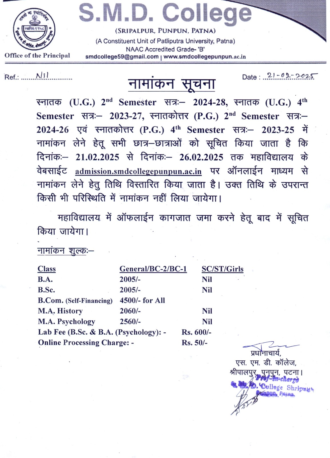 NOTICE REGARDING UG 2ND SEMESTER (2024-28) & 4TH SEMESTER (2023-27) AND PG 2ND SEMESTER (2024-26) & 4TH SEMSETER (2023-25) ADMISSION DATE EXTENDED OF 26-02-2025