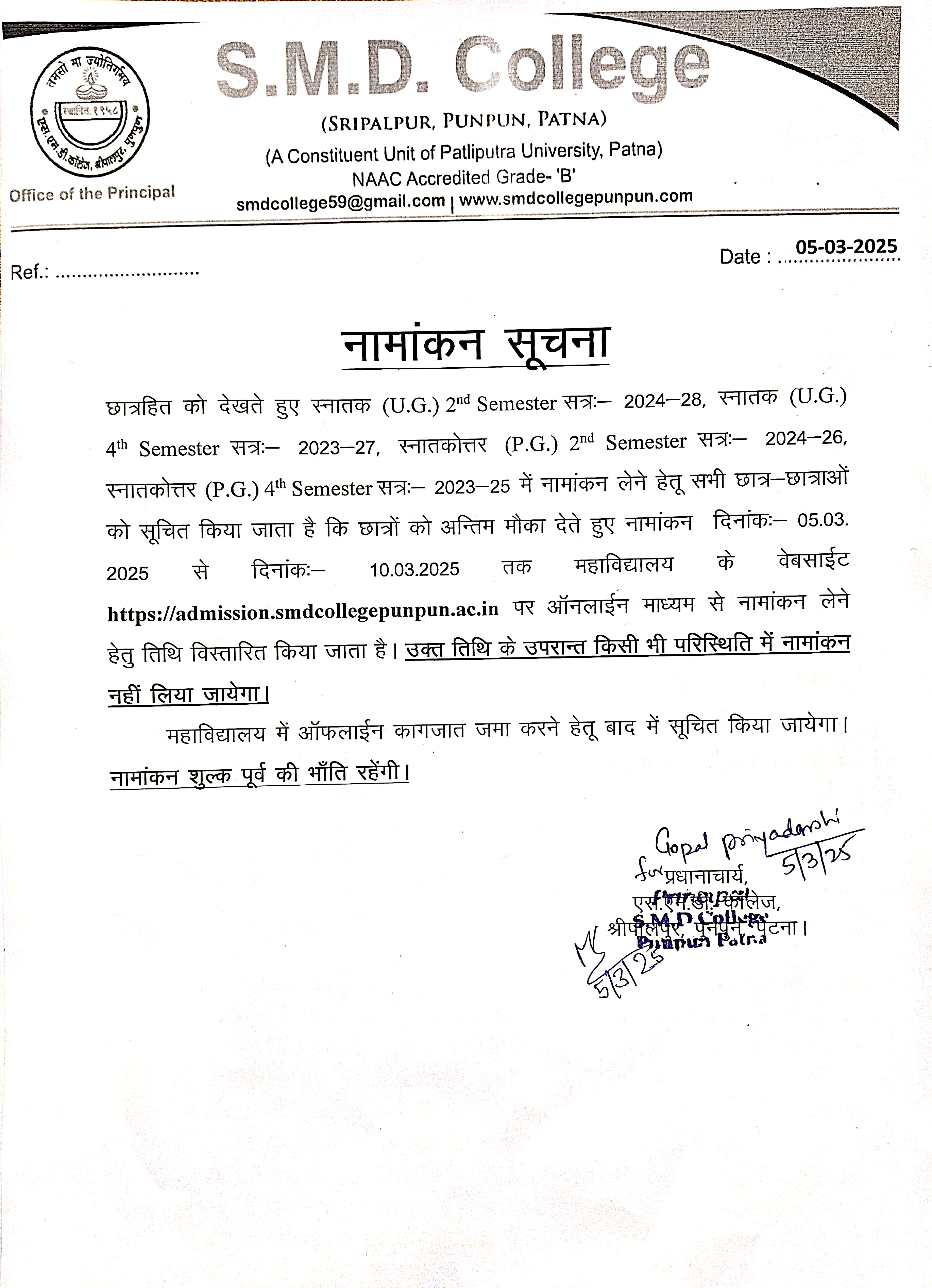 NOTICE REGARDING UG 2ND SEMESTER (2024-28) & 4TH SEMESTER (2023-27) AND PG 2ND SEMESTER (2024-26) & 4TH SEMSETER (2023-25) ADMISSION DATE EXTENDED OF 10-03-2025