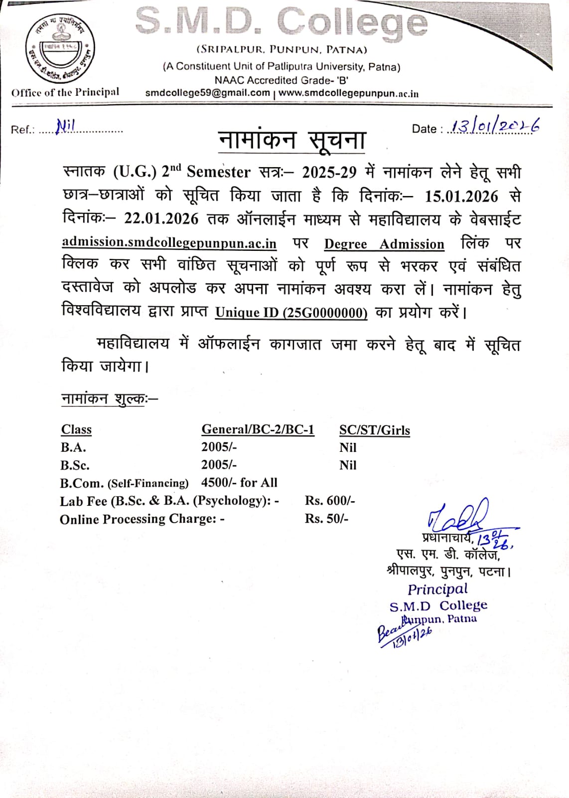 NOTICE REGARDING UG 2ND SEMESTER ADMISSION (2025-29)