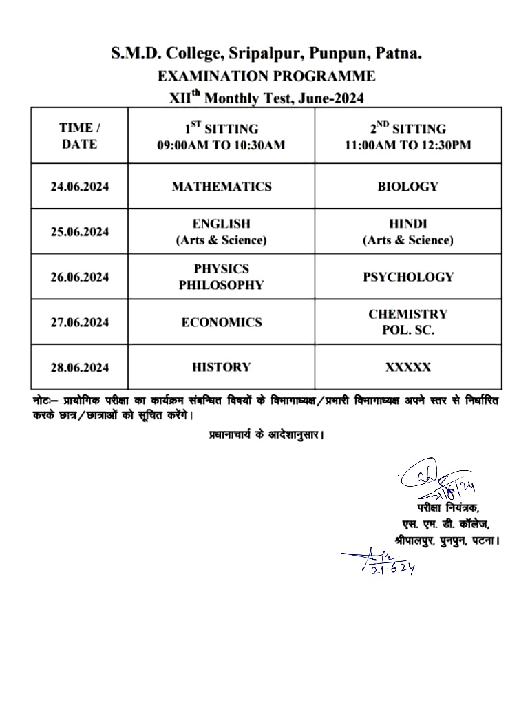 NOTICE REGARDING XIIth MONTHLY TEST EXAMINATION ROUTINE (2023-25)
